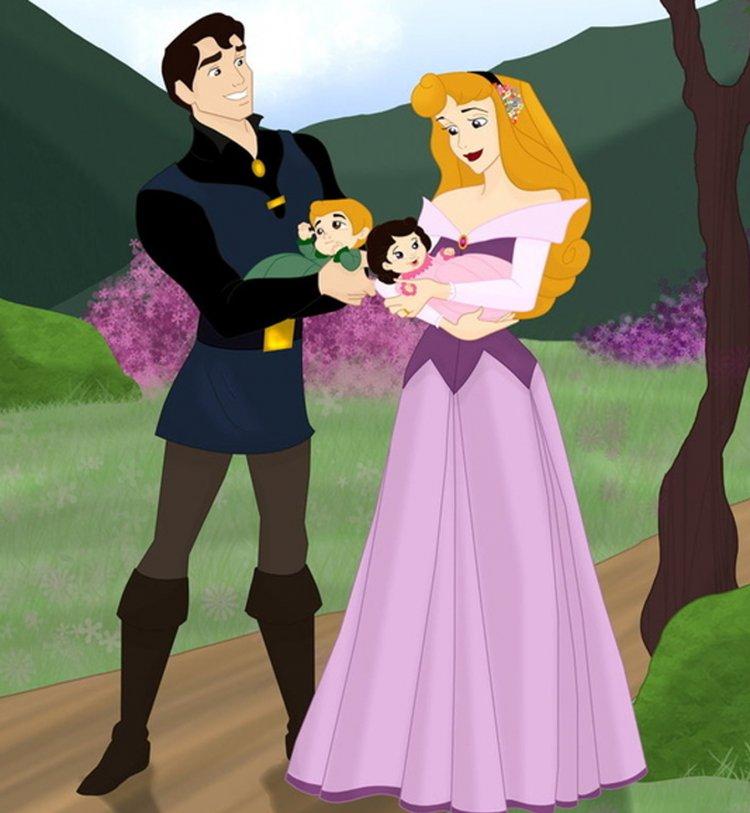 Aurore, la belle au bois dormant, son prince et leurs enfants