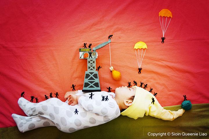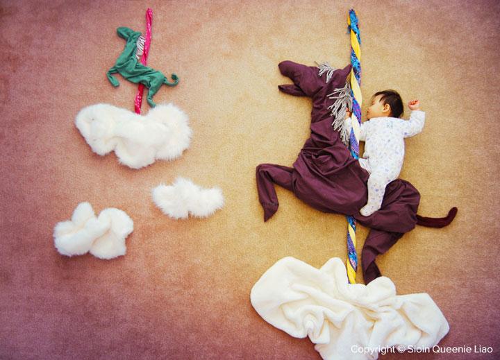 Alors que son petit fait la sieste, Queenie Liao une artiste californienne met en scène son baby. Dans la série de photo "Wengenn In Wonderland" (Wengenn au pays des merveilles), elle met en scène son dernier né. Dans un monde imaginaire, féérique et onirique on retrouve le petit Wengee héros d’un univers incroyable.